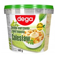 Sałatka z warzywami 69 %, w tym kapusty białej marynowanej 52 %. Główne składniki: kapusta, olej rzepakowy, woda, marchew, ogórek, cukier, kukurydza, ocet spirytusowy, sól, przyprawy (zawierają gorczycę), skrobia modyfikowana, śmietana w proszku (z mleka), żółtko jaja w proszku, ekstrakt kopru, substancje konserwujące: sorbinian potasu, benzoesan sodu; regulatory kwasowości: kwas mlekowy, kwas jabłkowy, kwas winowy (L (+) -); aromaty.